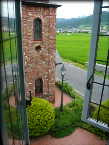 ホテル秀峰館手前の道を斜め左に進むと300m先右手にアンティークレンガの建物があります。由布院駅から徒歩で約15分