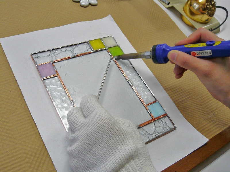 作業工程でガラスやハンダゴテ(高温)、薬品などを扱います。